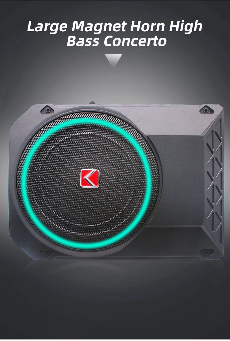 KUERL 10 inch 800W under seat auto audio subwoofer modified 12V big power amplifier slim car subwoofer